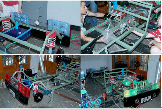 (7)安裝電路:本品電路原理和實(shí)際的桑塔納2000型轎車有些區(qū)別,只能用外部電源(AC220V)供電,設(shè)有電機(jī)驅(qū)動(dòng)部分、點(diǎn)火部分、燈光部分,其中電機(jī)部分使用交流調(diào)壓器來調(diào)節(jié)電機(jī)的輸入電壓(交流電經(jīng)整流后進(jìn)入直流電機(jī)),從而調(diào)節(jié)發(fā)動(dòng)機(jī)的轉(zhuǎn)速。燈光部分使用的是經(jīng)變壓后輸出的9V電流,前燈架設(shè)有大燈、霧燈、左右轉(zhuǎn)向燈、變光燈;后燈架設(shè)有尾燈、后轉(zhuǎn)向燈、倒車燈及霧燈。安裝時(shí),只要對(duì)準(zhǔn)各插頭上即可,若燈泡不亮換上備用燈泡(如安裝完畢試車時(shí)電機(jī)不按順時(shí)針方向轉(zhuǎn)動(dòng)時(shí),請(qǐng)將其插頭的正負(fù)極對(duì)調(diào)即可)。