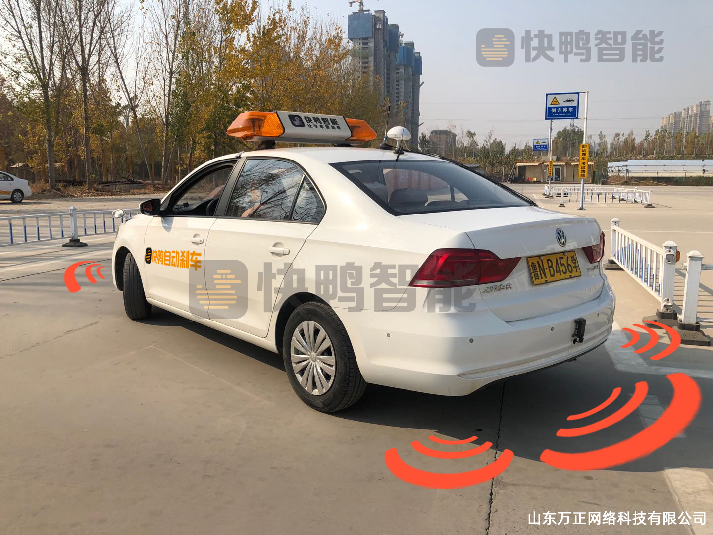 教練車(chē)考試車(chē)主動(dòng)安全防護(hù)裝置采用最新的自動(dòng)泊車(chē)技術(shù)以及符合奧迪、奔馳雷達(dá)感應(yīng)器,安全檢測(cè)范圍可以涵蓋車(chē)前及車(chē)后360度范圍內(nèi)的危險(xiǎn)障礙物情況,具有超速制動(dòng)、限速制動(dòng)、誤把油門(mén)當(dāng)剎車(chē)制動(dòng)、車(chē)輛后溜制動(dòng)(需搭配快鴨機(jī)器人教練)、電子圍欄制動(dòng)(需搭配快鴨機(jī)器人教練)、前方遇障礙物制動(dòng)、后方遇障礙物制動(dòng)、側(cè)方遇障礙物制動(dòng)等功能,除了車(chē)輛自身的自動(dòng)剎車(chē)功能外,可搭配快鴨機(jī)器人教練遠(yuǎn)程智能管控中心也可以進(jìn)行遠(yuǎn)程剎車(chē),場(chǎng)地?zé)o法檢測(cè)的較低的障礙物可以畫(huà)上電子圍欄,以上措施都可以保障人車(chē)安全。