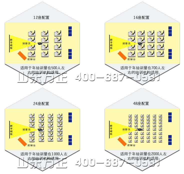 ①、用就省系列汽車駕駛模擬座艙群是由若干臺汽車駕駛模擬座艙組成。使用駕?梢愿鶕(jù)自身教學(xué)的需要,選配16座、24座或36座等不同數(shù)量汽車駕駛模擬座艙,以滿足組訓(xùn)規(guī)模的需要。