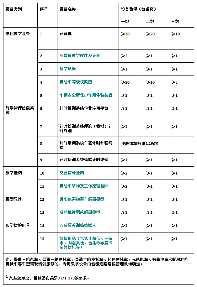 機(jī)動(dòng)車(chē)駕駛員培訓(xùn)機(jī)構(gòu)教學(xué)設(shè)備要求