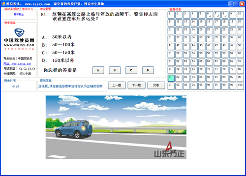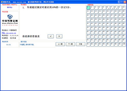 2013年1月最新駕駛員理論考試系統(tǒng)(機動車駕駛?cè)丝颇恳豢荚?總分100分,90分及90分以上即過關,考試計時45分鐘,小型汽車、客貨車所有車型均為單選題、判斷題,無多選和動畫題。