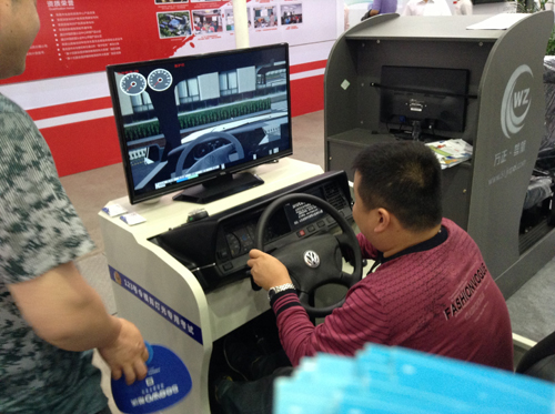 山東萬正此次展示的汽車駕駛模擬器其設(shè)置與汽車駕駛室完全相同,方向盤、擋位器、踏板等樣樣齊全。