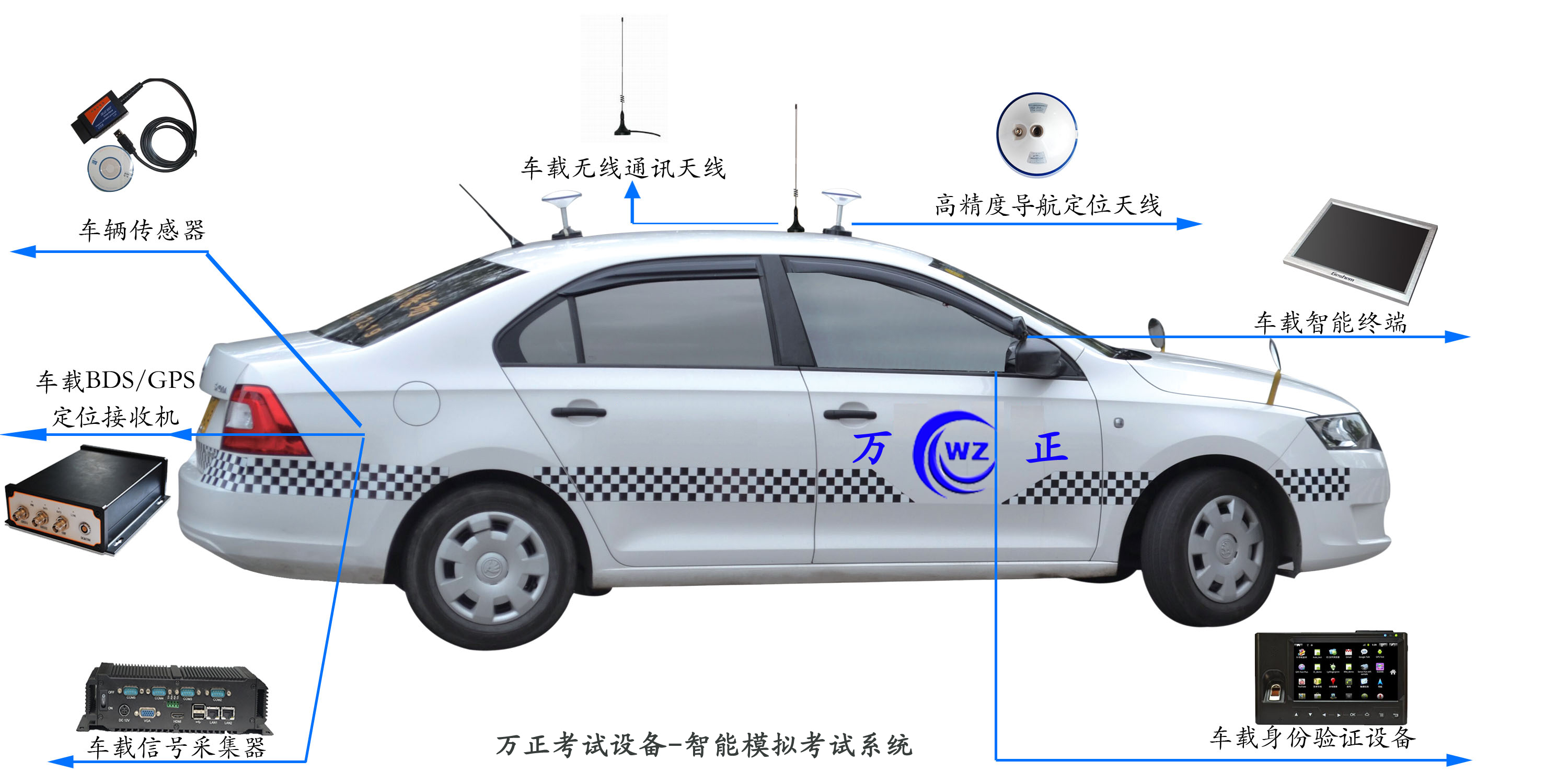 主控系統(tǒng)的主要功能包括身份證、考試過(guò)程檢測(cè)判定、信息提示、音視屏監(jiān)控、考試信息傳輸、錄像錄音保存、考試管理、數(shù)據(jù)安全管理、成績(jī)單打印輸出、統(tǒng)計(jì)、查詢(xún)和系統(tǒng)自檢。車(chē)載系統(tǒng)用于采集、處理和發(fā)送考試車(chē)輛的考試信息,并接收來(lái)自主控設(shè)備、場(chǎng)地設(shè)備的考試信息。車(chē)載系統(tǒng)包括車(chē)載計(jì)算機(jī)、GPS移動(dòng)站、車(chē)載傳感器組、車(chē)載攝像機(jī)、車(chē)載信息采集系統(tǒng)、車(chē)載語(yǔ)音系統(tǒng)和無(wú)線(xiàn)傳輸設(shè)備。場(chǎng)地系統(tǒng)用于采集和發(fā)送機(jī)動(dòng)車(chē)駕駛?cè)藞?chǎng)地駕駛技能考試各考試項(xiàng)目的考試信息。場(chǎng)地系統(tǒng)包括場(chǎng)地硬件、場(chǎng)地布線(xiàn)、場(chǎng)地監(jiān)控系統(tǒng)、標(biāo)示標(biāo)牌、測(cè)繪系統(tǒng)和場(chǎng)地供電系統(tǒng)。